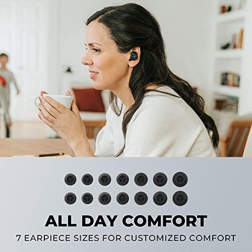 Advanced Ergonomics: Wear these earbuds securely and comfortably for long stretches of time; 7 earpiece sizes included for more customized comfort