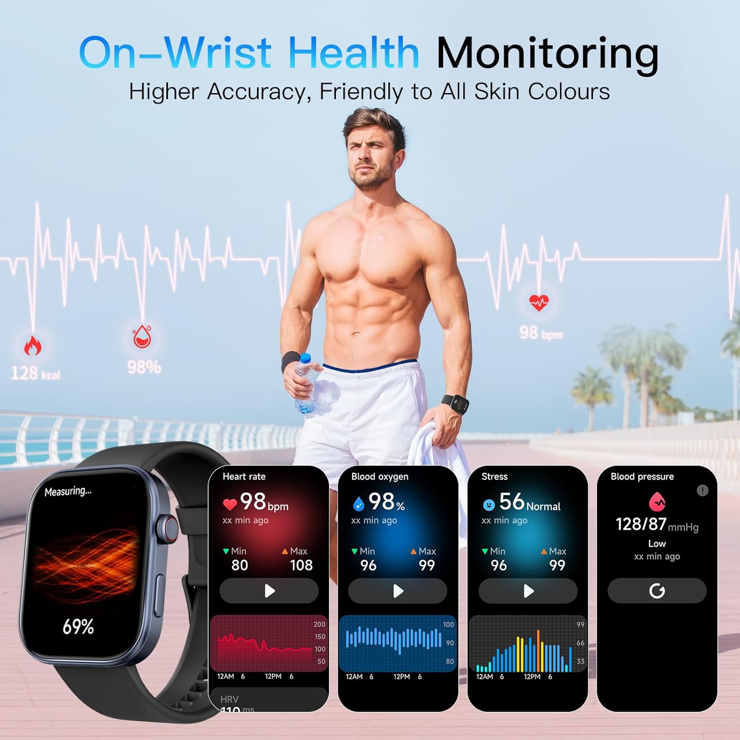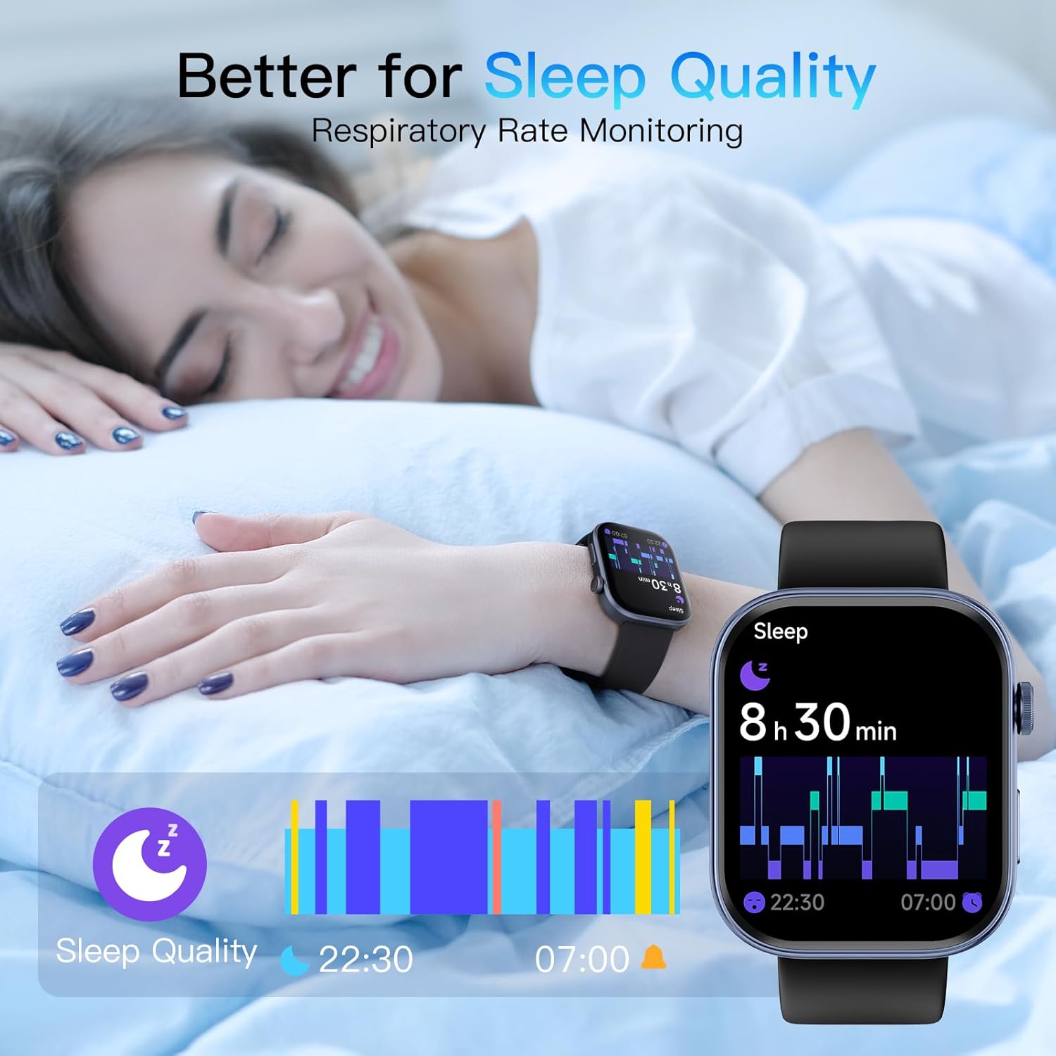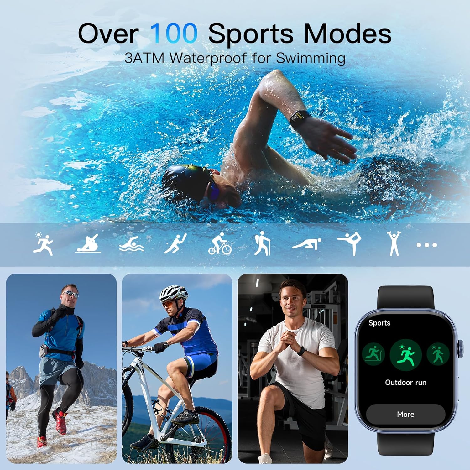 【100+ Sports Modes and 3ATM Waterproof】The fitness watch supports 100+ sports modes (running, cycling, swimming, yoga, basketball, walking, etc.), and monitors data in real time during exercise, such as steps, distance, calorie consumption, heart rate and blood oxygen exercise time to help adjust the training intensity to achieve better exercise results. The built-in pedometer can track daily steps and calorie consumption. At the same time, it is equipped with a sports watch 3ATM waterproof design, which can be used safely on rainy days, daily hand washing, and swimming.