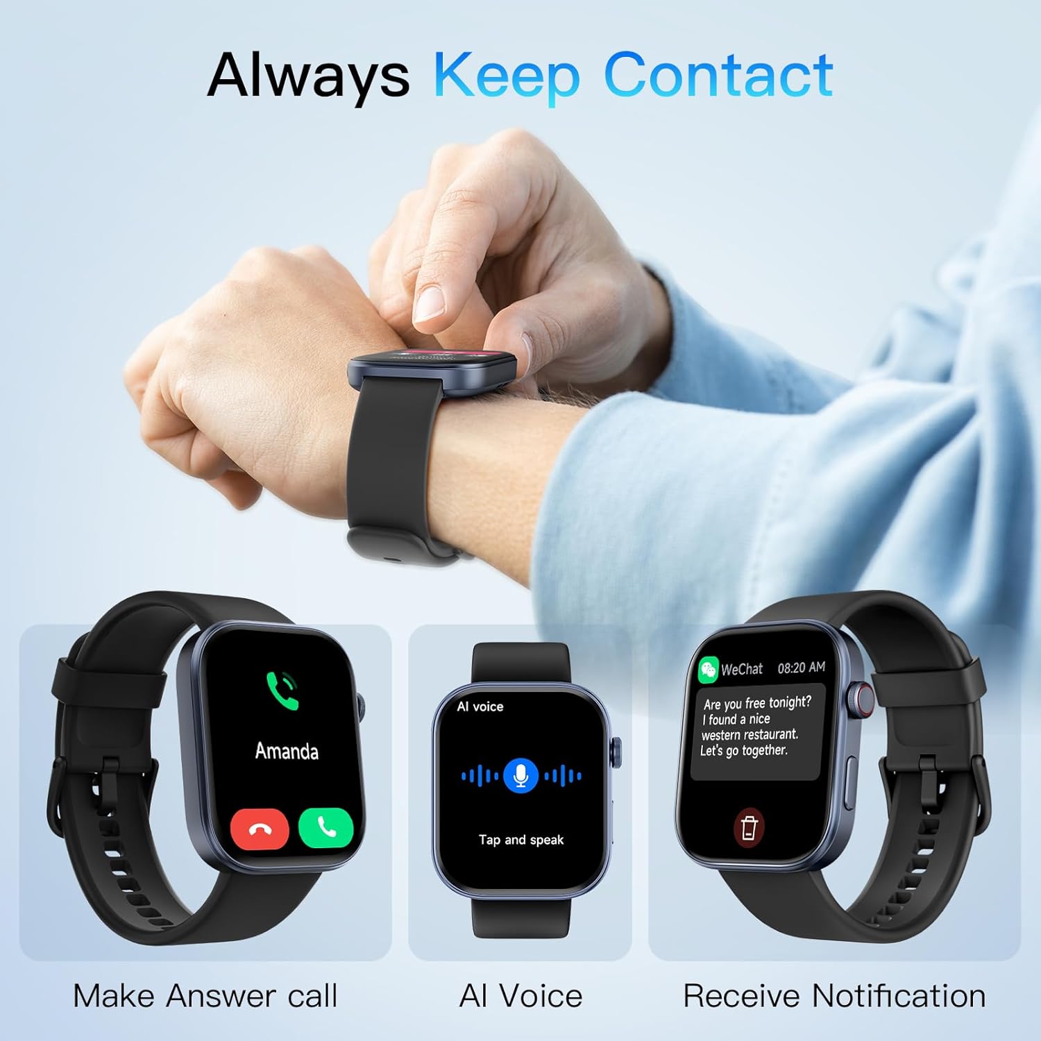 【Bluetooth Call and Message Notifications】The latest Bluetooth 5.3 technology ensures a stable connection and can receive real-time message notifications from Facebook, Whatsapp, Instagram, SMS, etc. The smartwatch equipped with a built-in microphone and high-definition speakers for smooth dialing and answering calls, and you can also add frequently used contacts. You can set the notification ringtone and vibration volume, so that you will not miss important messages and calls no matter when and where.