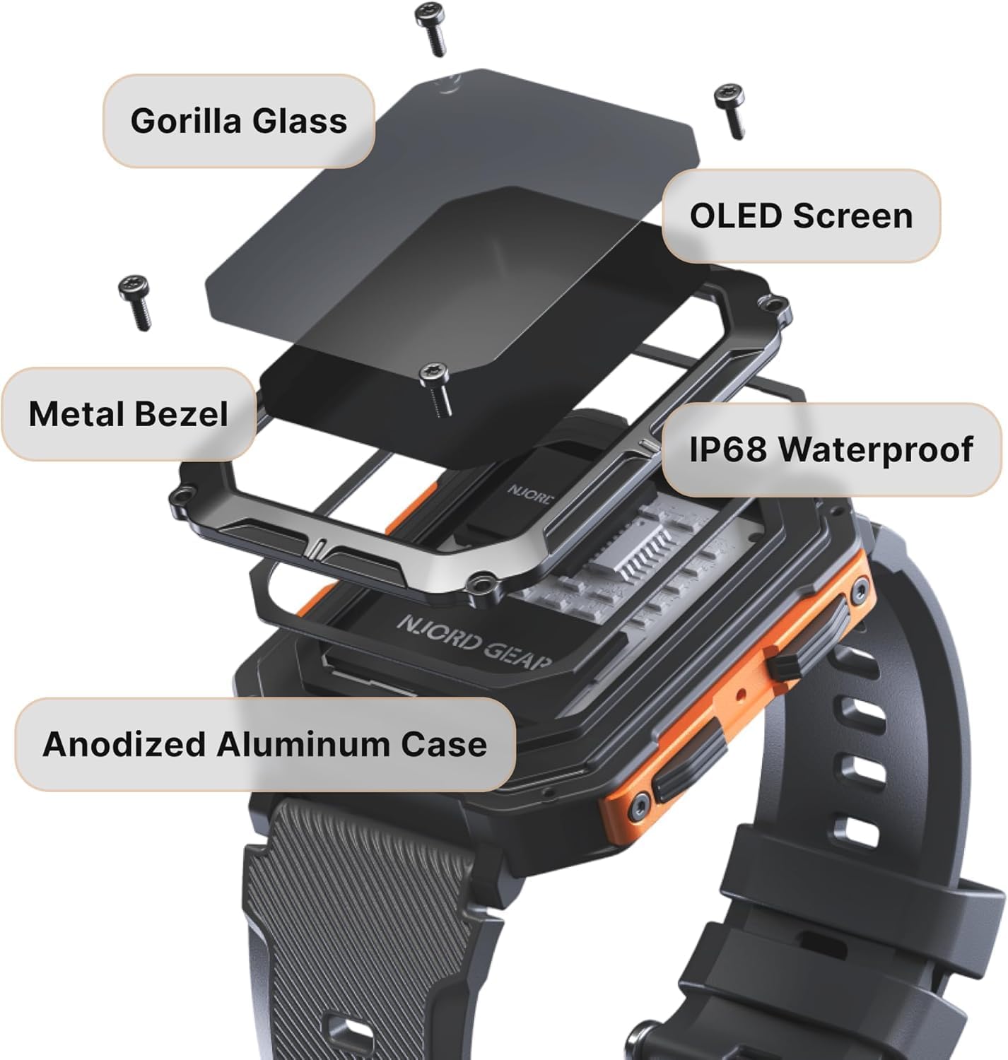 Packed with Essential Features: The Njord Gear Indestructible Smartwatch comes fully loaded with Bluetooth calling, heart rate monitoring, sleep tracking, temperature checks, pedometer, distance, calorie tracking, music playback, stopwatch, calculator, weather display, wrist and screen illumination, and the ever-handy “find your phone” feature – everything you need, right on your wrist.