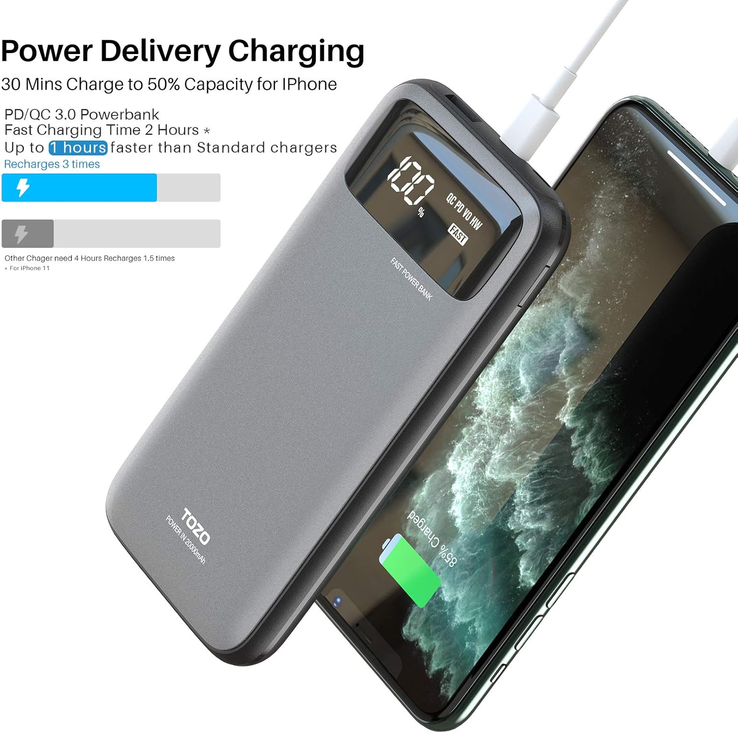 Contains the 20000mAh Capacity.Moreover, just taking one PD cable of the newest iPhone, bring your new iPhone back to 50% in as quickly as 30 minutes.
