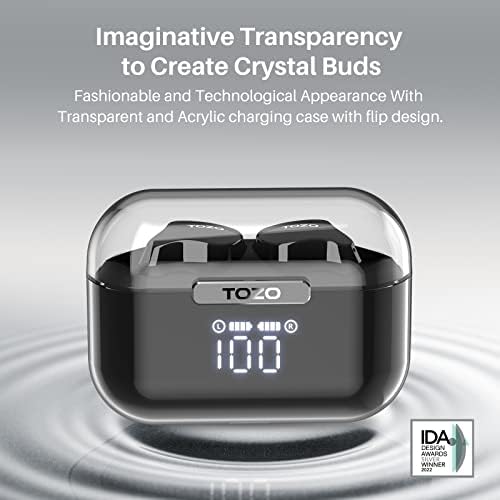 【Bluetooth 5.3 & High-quality Sound】Equipped with Bluetooth 5.3 chip and true wireless Bluetooth technology, so the connection between TOZO Crystal Buds and other devices is very stable; Meanwhile, with 6mm diameter loud speaker, the original sound is a perfect recovery, making the treble sweet and clear, the bass is strong and powerful.