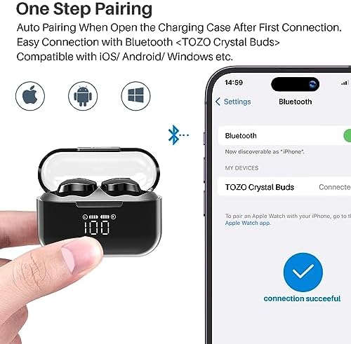【High-Fidelity Audio & Crystal-Clear Call】 Poor call quality when with headset? TOZO Crystal Buds are equipped with 4 microphones to reduce ambient noise through Dual-microphone AI algorithm, so you can always enjoy High-fidelity audio and Crystal-Clear call even in noisy environments, no longer worry about poor call quality when wearing headphones.