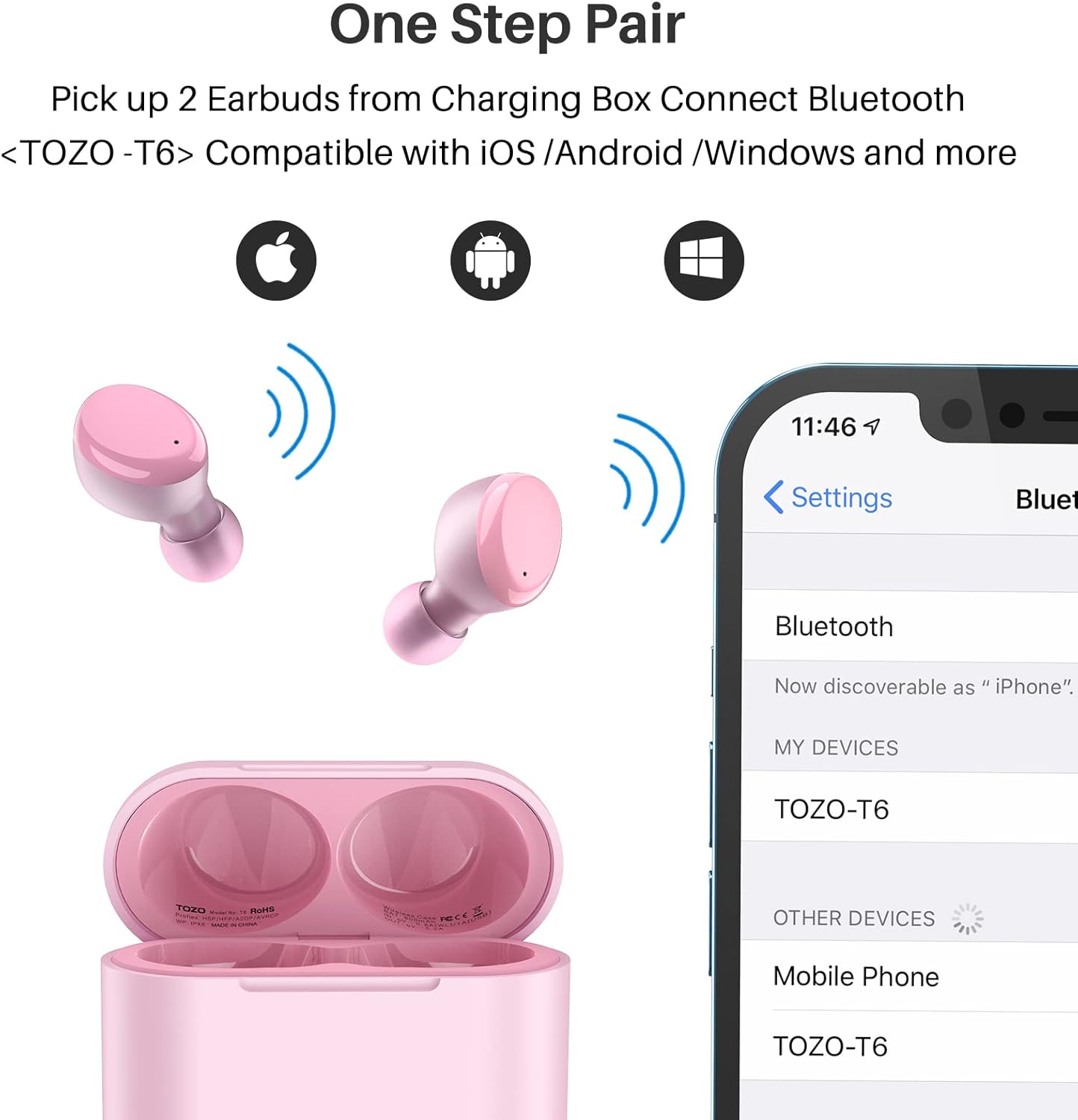 [Ergonomic Design and Lightweight] Looking for a pair of headphones that offer both comfort and portability? Look no further than our ergonomic design and lightweight headphones.With a meticulously crafted fit, TOZO T6 headphones hug your ears perfectly, distributing weight evenly to eliminate discomfort even after hours of use. The lightweight material ensures maximum portability, making it easy to take them with you wherever you go.