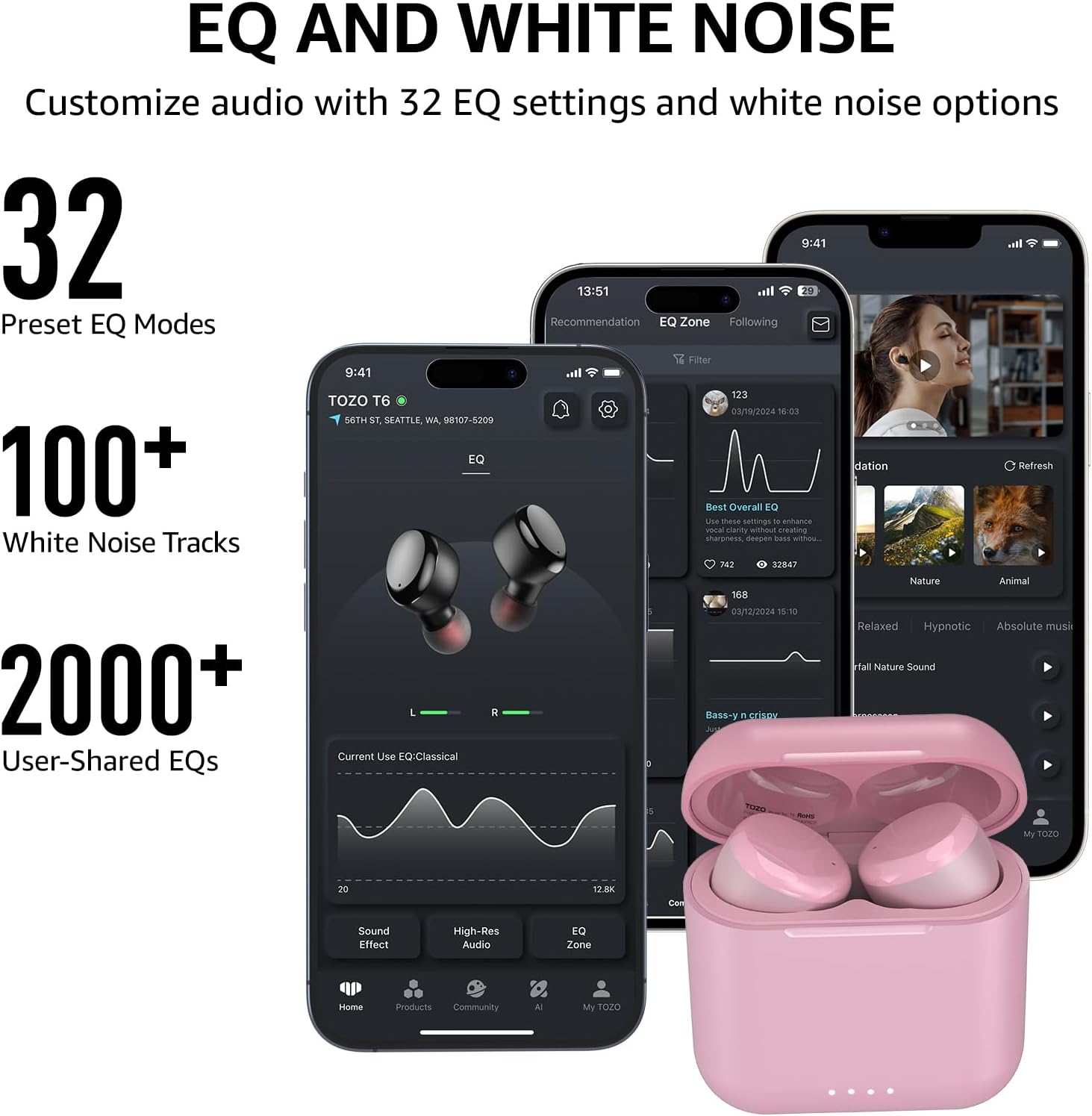 [TOZO APP Compatibility] You can freely switch between 32 preset modes and explore various styles of music via TOZO app. Whether you prefer stronger bass or more balanced sound, these earbuds give you the flexibility to follow your fine-tuned audio.