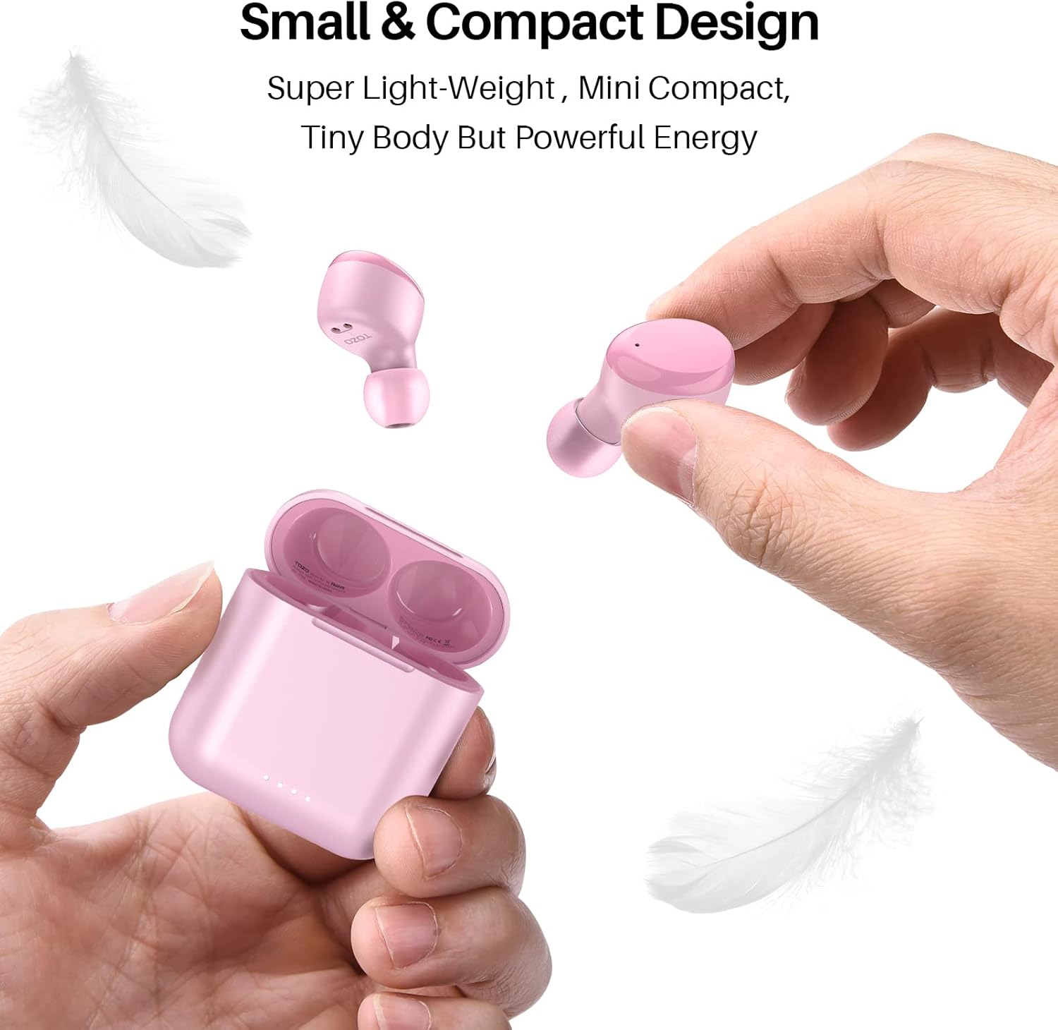 [Smart Touch Control & One Step Pairing] Specific touch control function makes it more convenient, tap once to play/pause music and answer calls, double tap to skip forward/backward, hold to adjust the volume. Pick up 2 headsets from charging case and they will connect each other automatically, then only one step easily enter mobile phone Bluetooth setting to pair the earbuds.