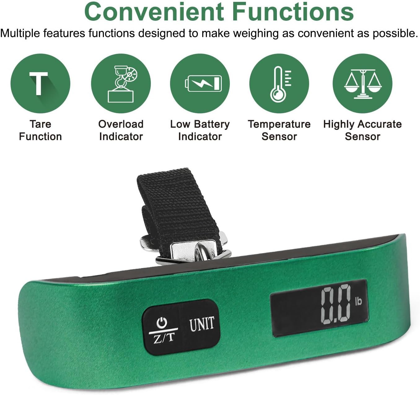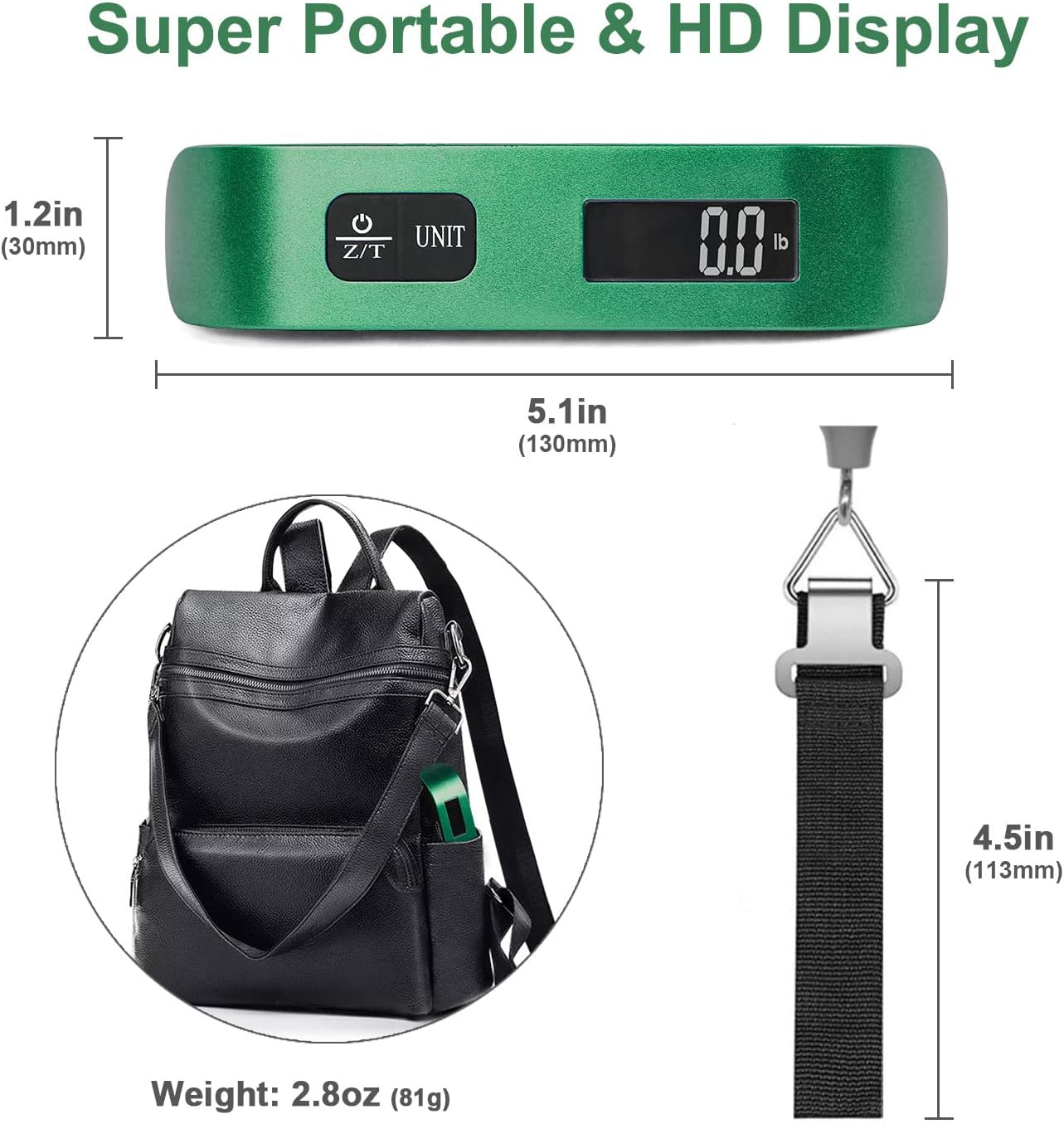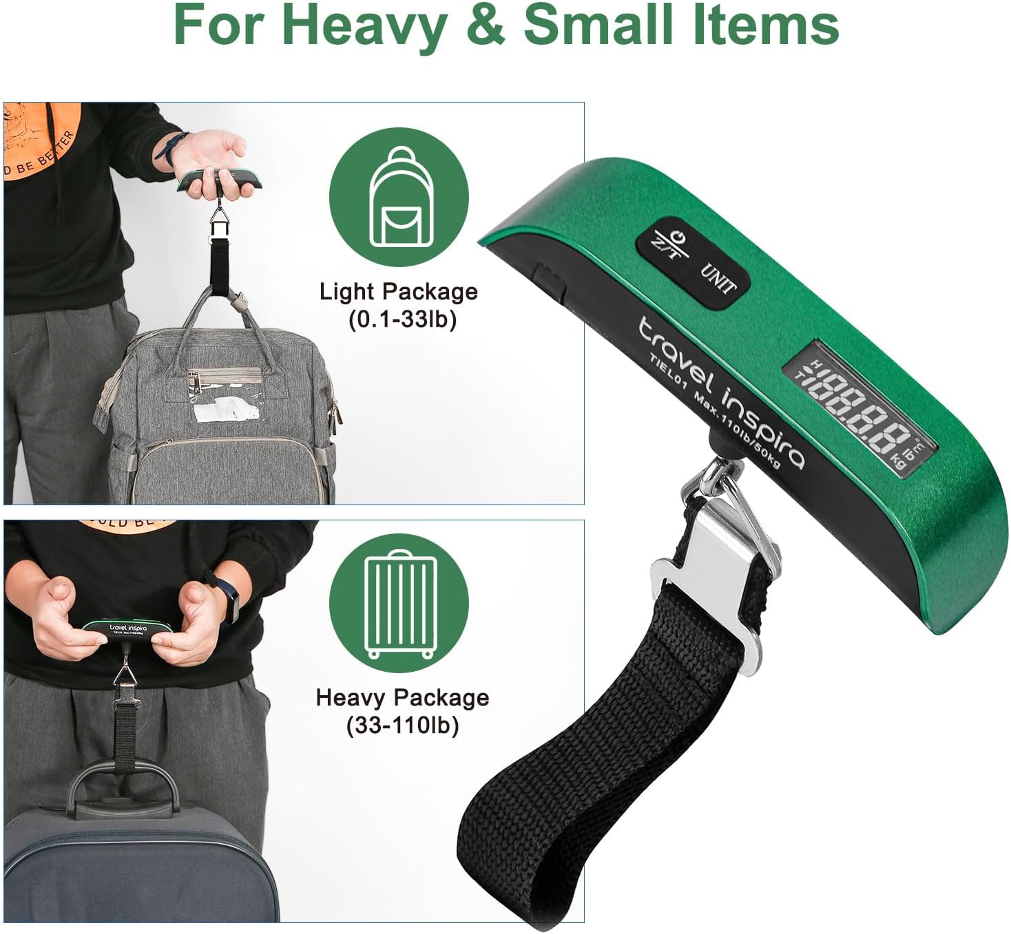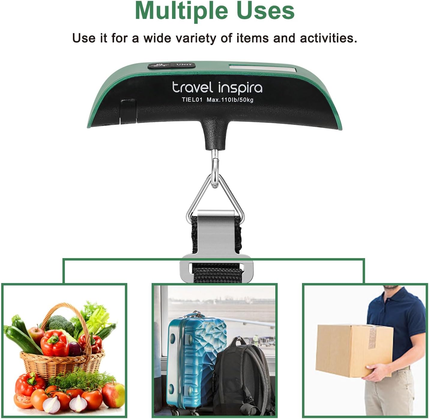 travel inspira Luggage Scale, Portable Digital Hanging Baggage Scale for Travel, Suitcase Weight Scale with Rubber Paint, 110 Pounds, Battery Included