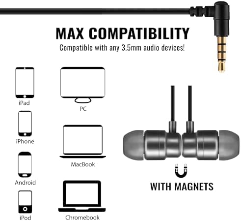 đ”ă48 Ω HIGH QUALITY EAR PHONES WITH MAGNETSăThanks to our 48 Ω speakers for mic, the sound is brilliant and intense, with passive noise isolation. On the inside, the metallic shell of these corded headphones also have two magnets that you can use to clip them around your neck or easily pack them together in their handy pouch
