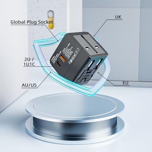 Plug Types: Travel adapter worldwide Compatible with multiple plug types including British, American, European, and Australian