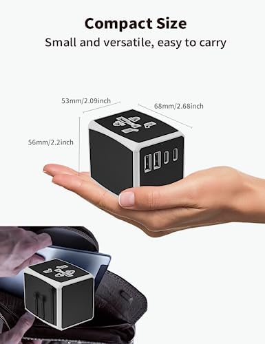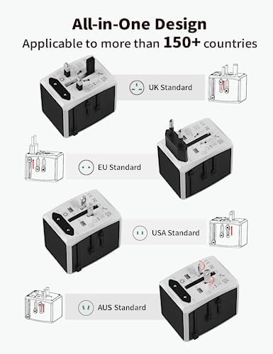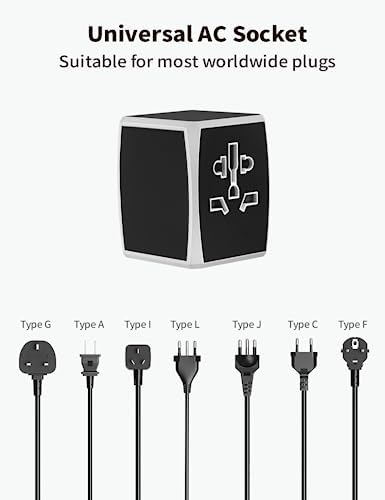 Universal Travel Adapter, International Travel Plug with 4X USB Ports,Travel Worldwide Wall Charger for US/UK/EU/AU,All in One Plug Converter for 150+ Countries (Type C/G/A/I)
