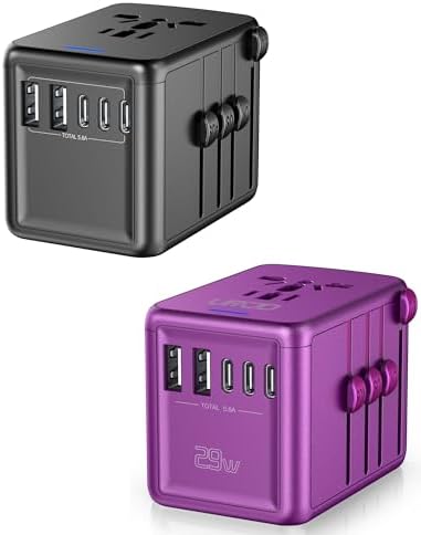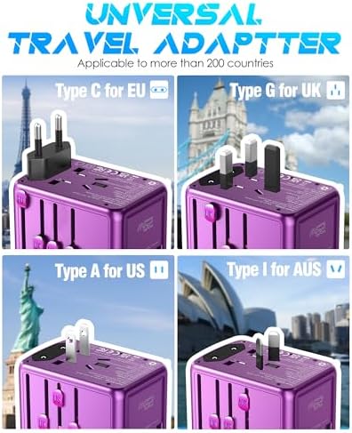 🌐 Universal Adapter Charges 6 Devices Simultaneously at Higher Speeds✈️ — This 6 IN 1 international plug adapter comes with More USB output, 3x USB-C Ports(3.0A) plus 2x USB-A ports(2.4A) total max 5.8a, and multi AC Sockets. Able to intelligently identify the current of your devices and fast charge them, compatible with iPhones, earbuds, iPads, kindles, phones, laptop, Nintendo Switch, tablets, cameras, accessories, power bank,mini CPAP, etc. Perfect for whole family and group use. Adaptors a