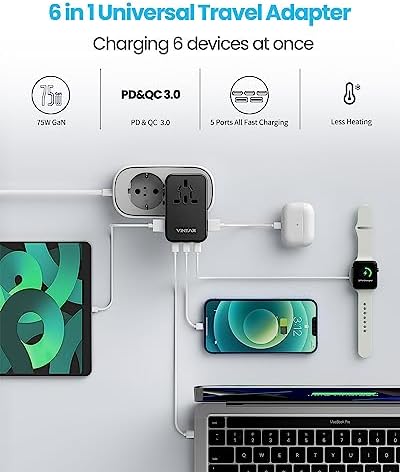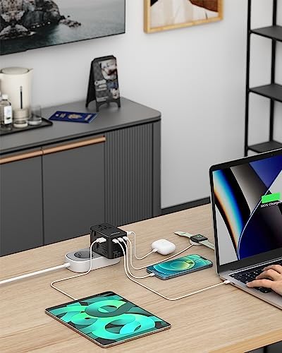 Safety and Quality Assurance: Advanced GaN technology makes worldwide international adapter charging faster, cooler and more efficient. Lower charging temperature for longer service life. 10A overload fuse makes it possible to cut off the current in case of overcurrent charging. Fire resistant material makes this adapter non-flammable. With safety shutters and plug lock system, supporting short circuit, over-voltage and over-current protection.