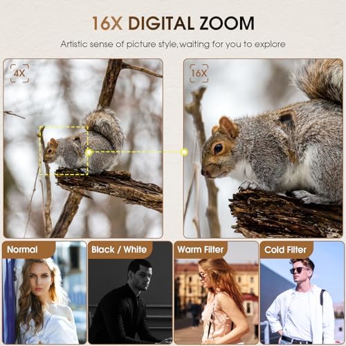 ๐๐๐๐ ๐๐ฎ๐ญ๐จ๐๐จ๐๐ฎ๐ฌ & ๐๐ ๐๐ข๐๐๐จ ๐๐๐ฆ๐๐ซ๐: 48MP 4k digital camera adds autofocus (light press shutter) and 16x zoom, using advanced autofocus algorithms to easily capture high-definition blockbuster shots of both close-ups and distant views! The 4K video camera is equipped with anti-shake and pause functions, meeting your high-definition needs for shooting sports, time-lapse, and slow motion, thus saving time in video editing. CMOS true color technology ensures that every shot possesses a delicate and realistic texture.