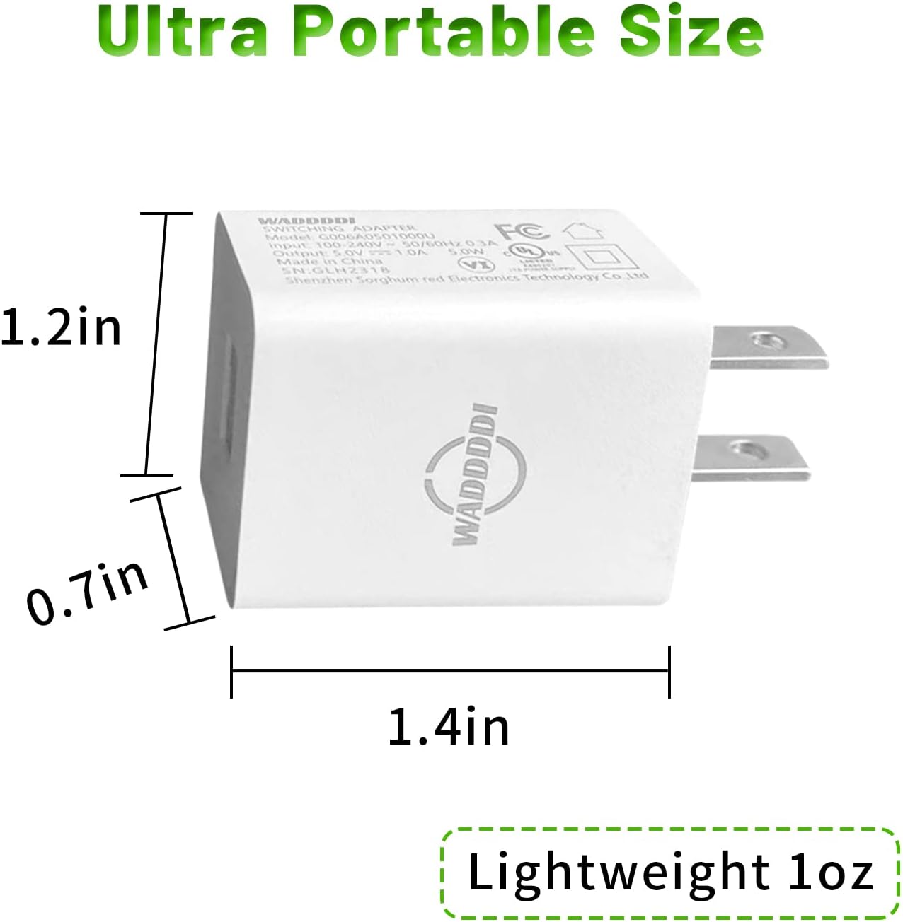 Portable:Standard USB Wall charger is small and lightweight,weight only 1oz ,portable for using in home and office,travel, put in your bag during business trips or vacations.
