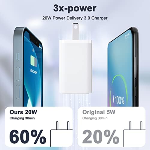 ⚡【Safe and Reliable Fast Charger】This UL certified 20W USB-C wall charger has passed 10000 hours life test, built-in smart protection chip, protect your device from short circuit, overcurrent, overvoltage, overheating, Effects of overheating. Charging is fast, safe and extremely reliable.