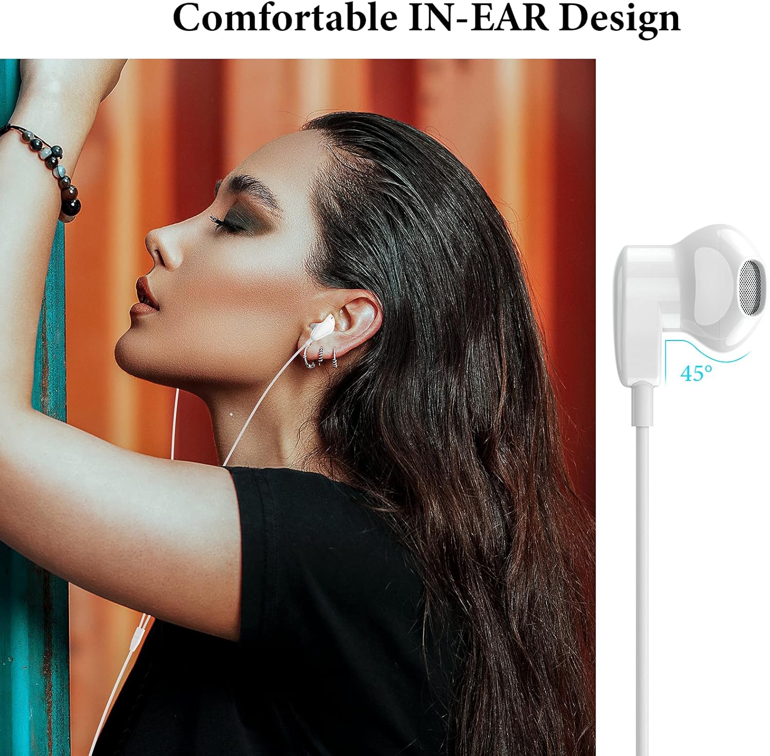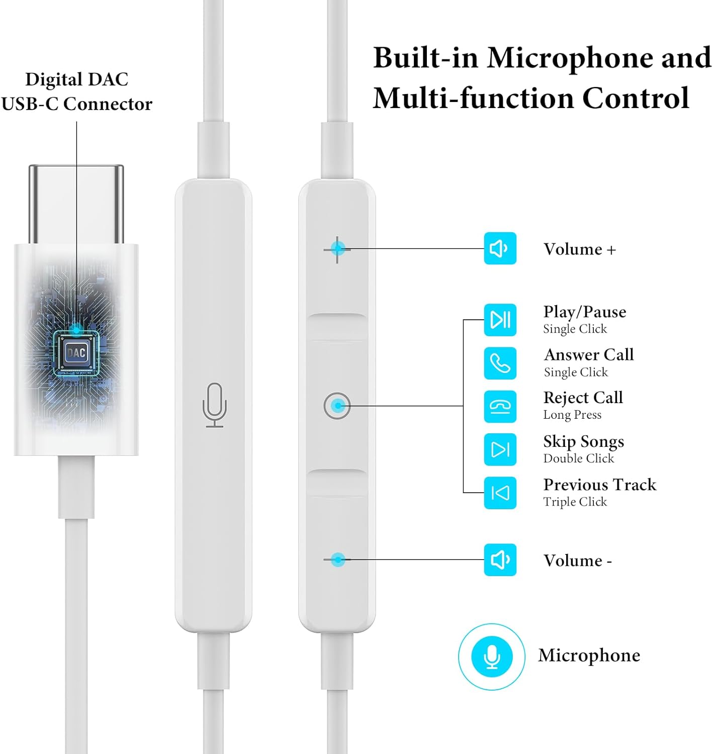 USB C Wired Earbuds with Microphone: The earbuds in-line remote control buttons built-in HD microphone for a clear phone call and better gaming experience, response calls and control your playlist or video without picking up your phone, easy for on-the-go use.(Note: The Microphone is on the right side)