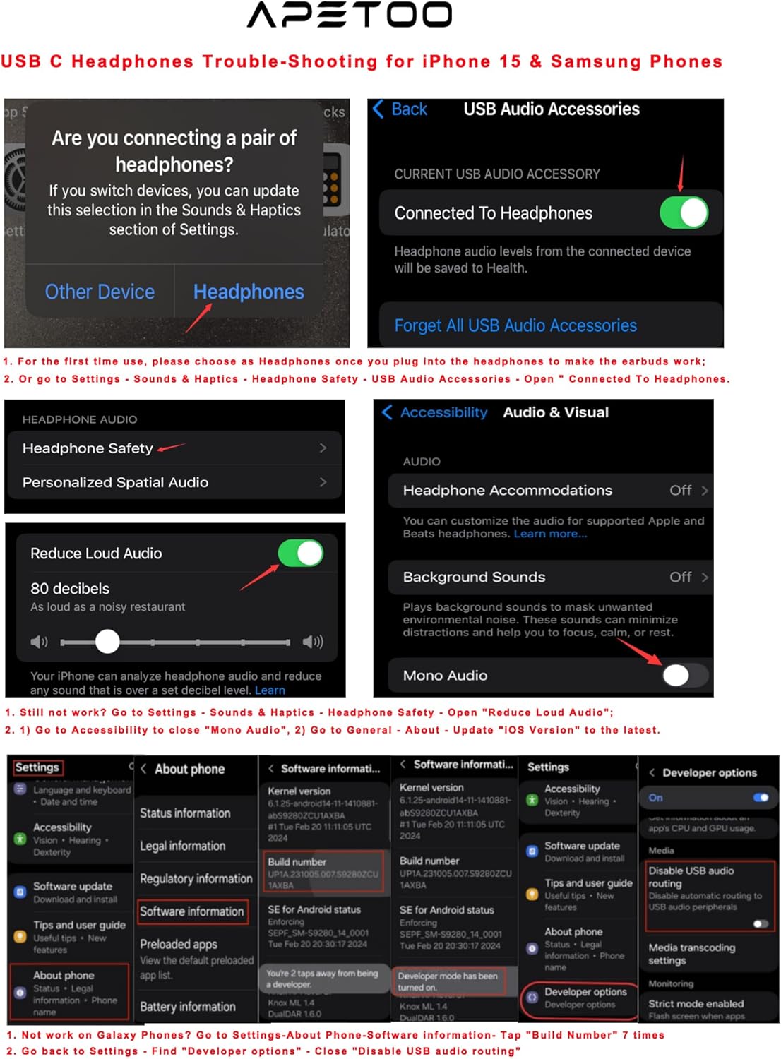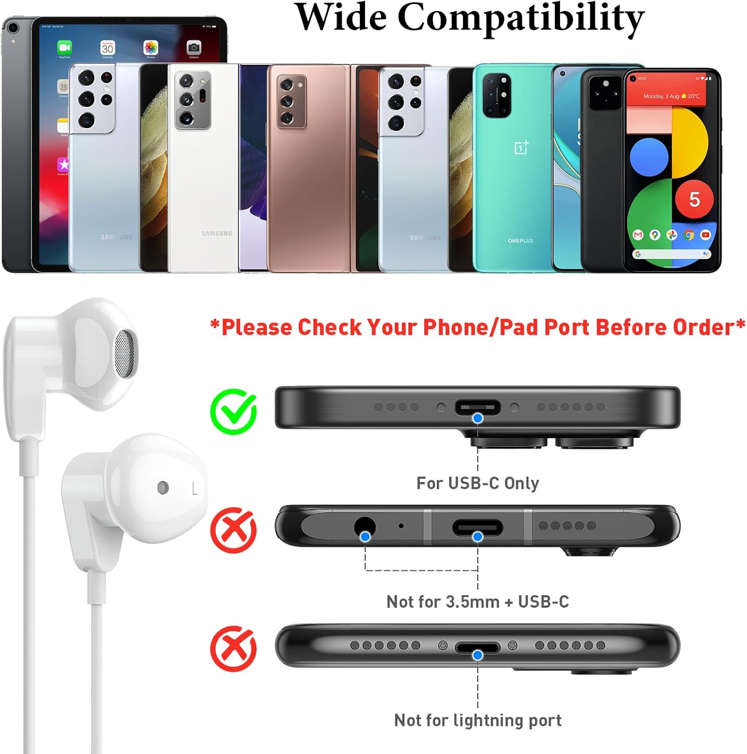 APETOO USB C headphones for iPhone 16 Pro/16 Pro Max/16/16 Plus,15/15 Plus/15 Pro/15 Pro Max, iPad Pro(M4), 10.9″ iPad 10th Gen, 12.9” iPad Pro 6th/5th/4th/3rd gen, 11” iPad Pro 4th/3rd/2nd gen, iPad Air M2/5th/4th, iPad mini 6th, Macbook Air Pro; Samsung Galaxy S24 Ultra/S24+/S24,S23 FE/S23 Ultra/S23+/S23,S22 S21 S20 Ultra FE,Note 20 Ultra/20/10+,A55/A54/A53,Tablet A9+, Z Fold5/4/3/2,Flip5/4/3/2; Google Pixel 9 8 8a 8 Pro 7 7a 7 Pro 6 Pro 6a 6 5 4 4XL 3XL; OnePlus 10T 10 Pro 9 8 Pro and more