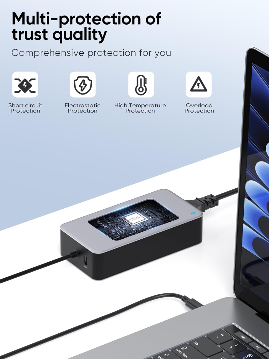 Safety Protection: Advanced technology automatically detects and delivers voltage and current as needed by the device. High-quality components and circuits, built-in IC chip technology provides overload/short-circuit/overheat protection, and multi-layer protection ensures that the charging process is safe, fast, energy-saving and high-performance