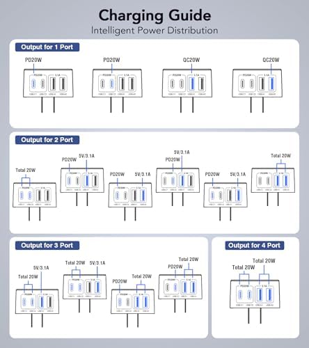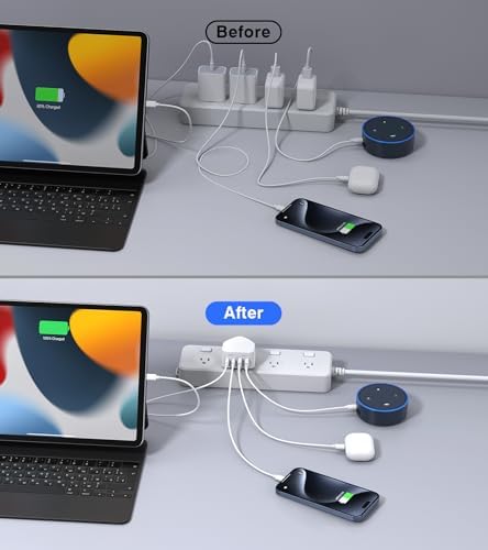【Unique Design】The cube-like shape is designed to be compact, saving space on wall outlets and power strips. Our ports face downwards, which means you can keep your cables out of sight for a cleaner, more sophisticated charging setup. Charge your devices without cramping your style.