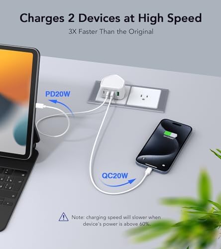 【Speedy Charging】Delivering up to 20W to each port, our charger offers rapid charging for your iPhone. In practical terms, an iPhone 15 reaches 50% charge in just about 30 minutes, providing you with efficiency and time-saving convenience for your fast-paced lifestyle.