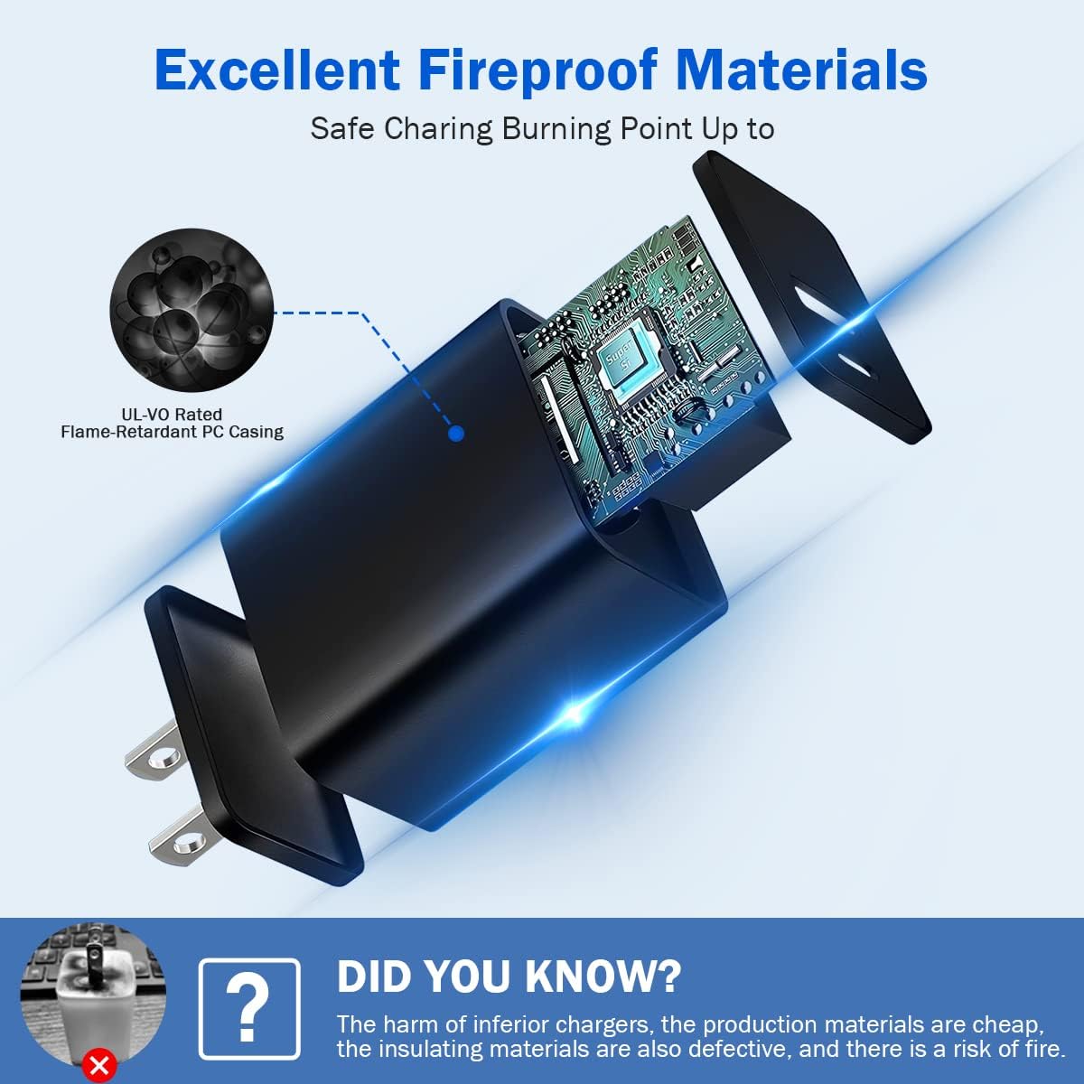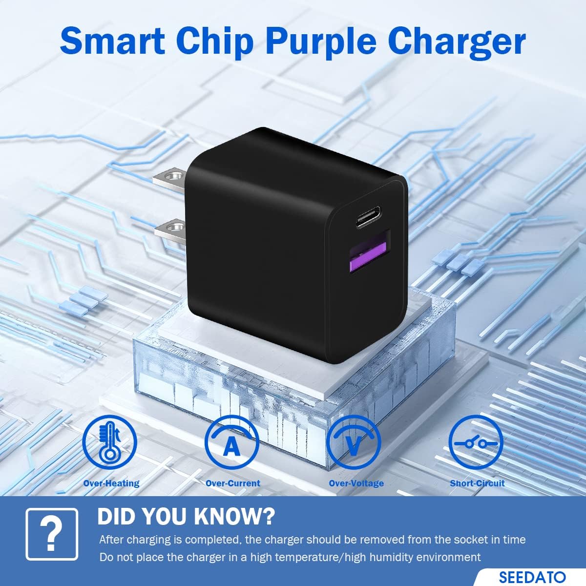 ✅【Safe and Reliable】 Seedato USB C charger block is suitable for US and World electrical standards. The built-in ic chip provides overcurrent protection, short circuit protection, overload protection and thermal protection to effectively protect your device. Flame-retardant shell to ensure your safety.