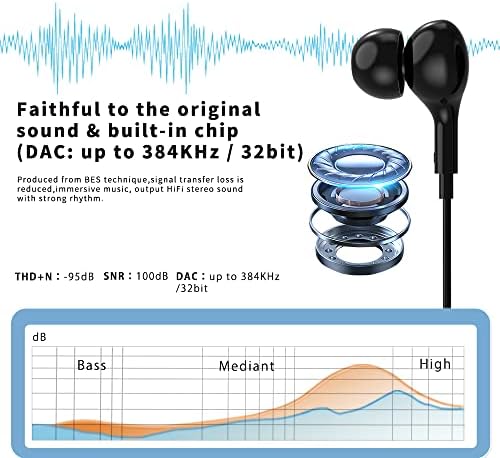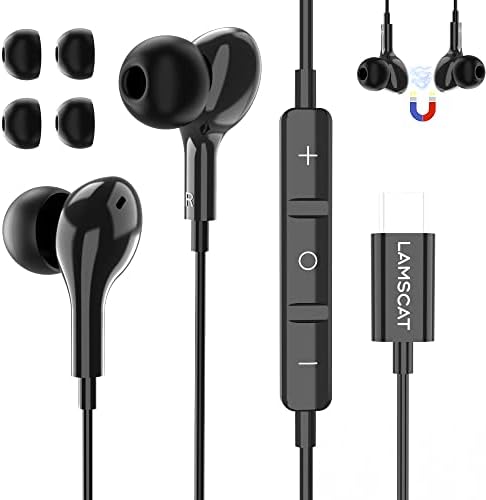 【ENC noise canceling & DAC chip & Mic】Equipped with DAC chip from BES and ENC noise conduction, this LAMSCAT USB C wired earbuds for Samsung can deliver clear sound to the other end of your calling and game through effectively suppress 90% of reverse environmental noise. Meet your all need on entertainment sound quality.