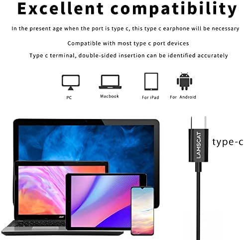 【USB C Headphones with Broad Compatibility】 for Samsung Galaxy Z Flip 3, Galaxy A53/A33, Galaxy S22/S22+/S22 Ultra/S21 FE 5G/S21/S21+/S21 Ultra/S20 FE/S20 Ultra/S20+/S20, Note 20/20+ /20 Ultra/10/10+, for OnePlus 9 Pro/8T/8/7T/7/6T, for Google Pixel 6 5 4 3 2 , for iPad Air 2020 /2018/Mini 6th 2021, USB-C device without 3.5mm jack.