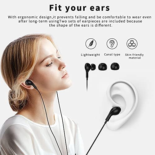 【Friendly In-ear Headphone】: Ergonomically 15° in-ear design delivers more powerful and clear sound, allow you to have clearer phone calls, enjoy excellent quality music streaming and gaming experience. It has varying reception degrees to varying frequency music. So for the diverse ear canal comes with S/M/L silicone cap which can fit your ears better.