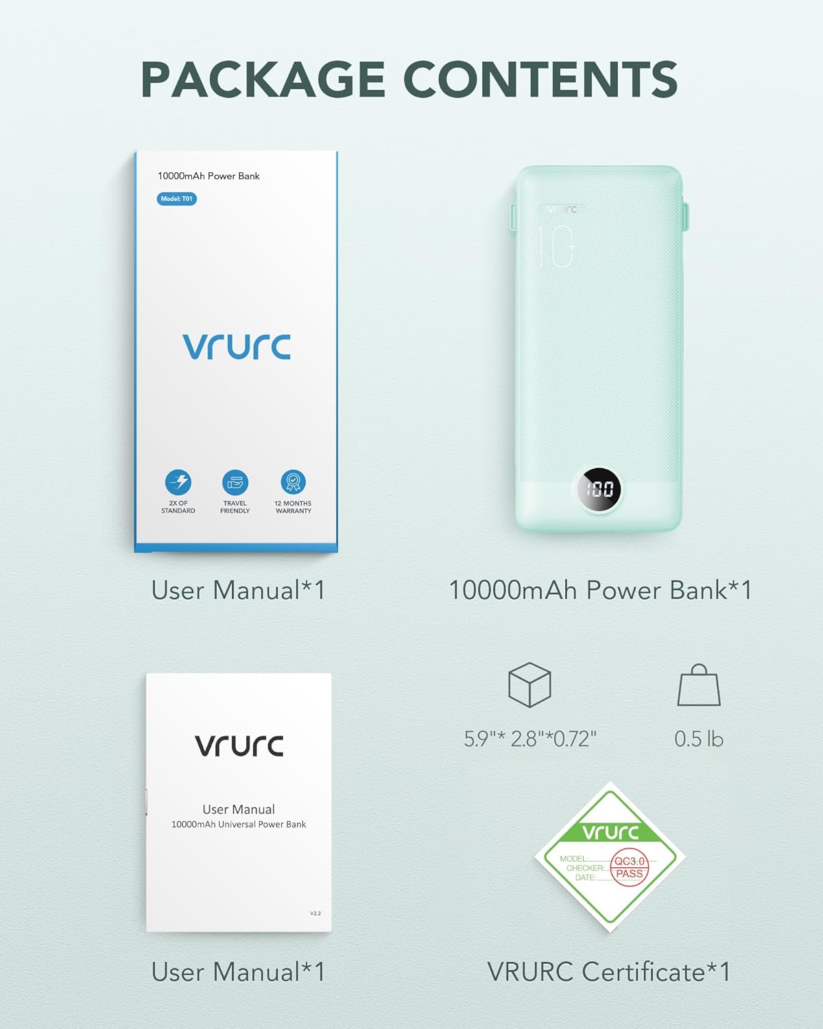 Be the first to review “VRURC Portable Charger Built-in Cables and AC Wall Plug, USB C Power Bank 10000mAh, Portable Phone Charger Compact Lightweight External Battery Pack for Smart Phones, Tablets etc-Green”