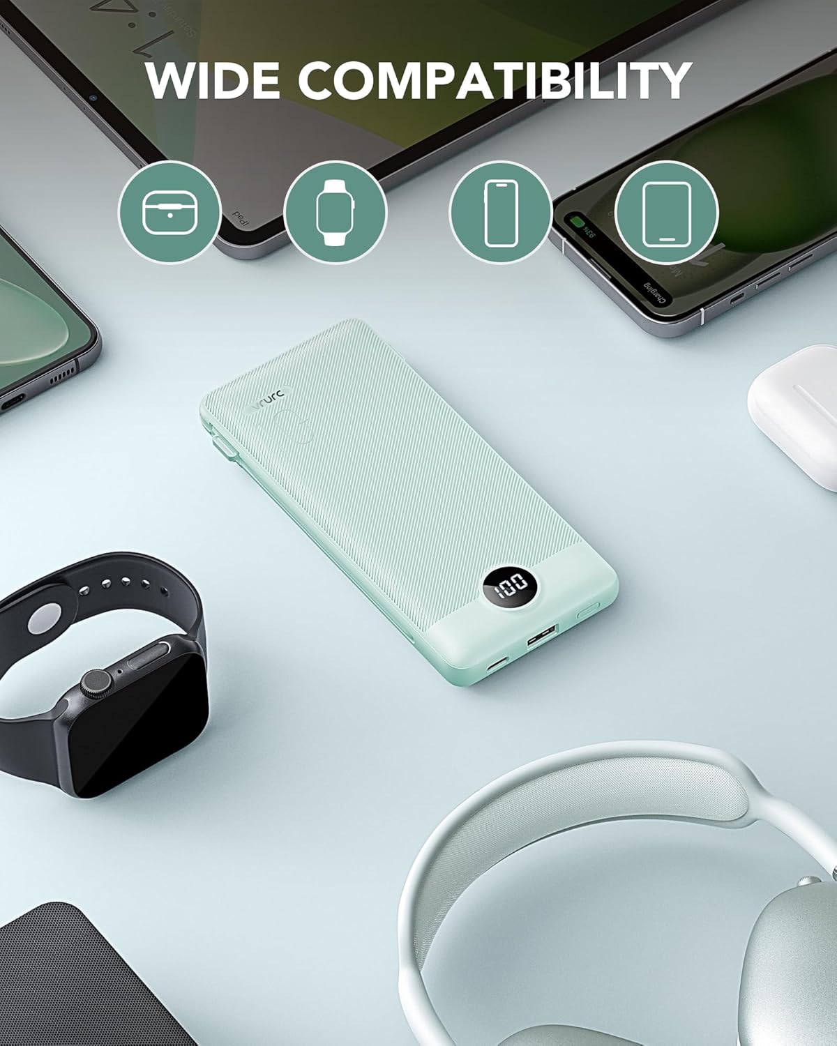 [High Capacity & Universal Compatibility] Boasting a 10,000mAh capacity, this USB-C portable charger can power your devices 2.5 to 4 times on a single charge, depending on the device. It’s compatible with iPhones, Android devices, and most USB-C enabled gadgets using the built-in cables.