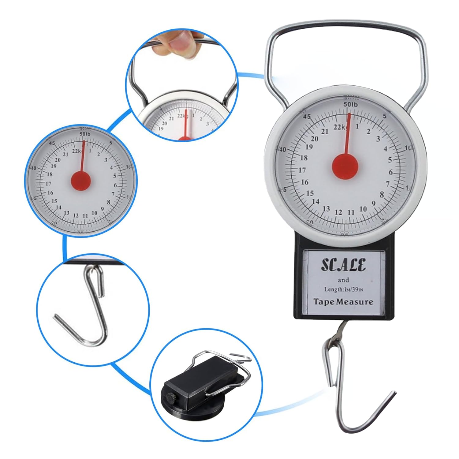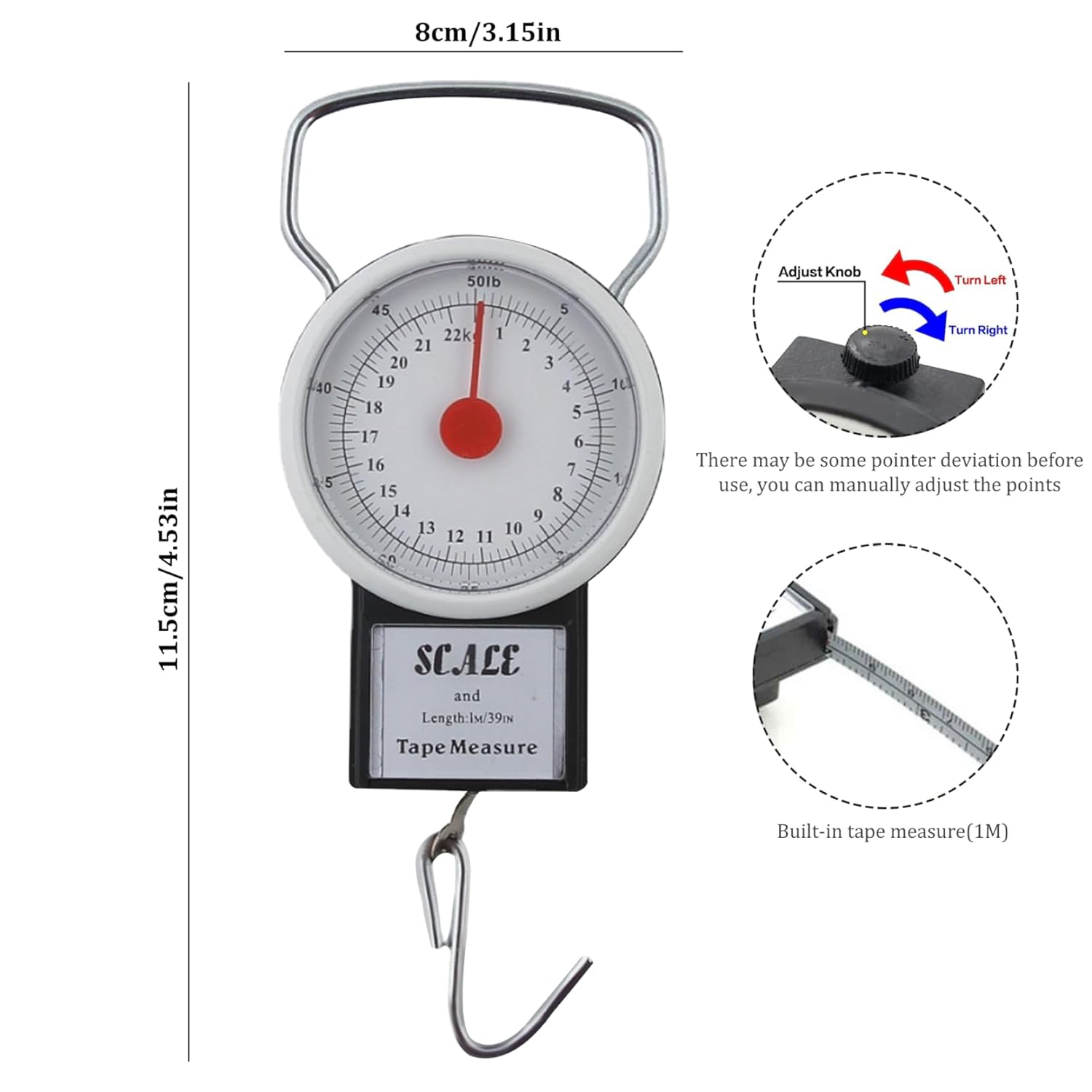 Built-in Tape Measure: The scale comes with a 1-meter (3.28 feet) tape measure, conveniently integrated into the handle. This tape measure allows you to quickly and easily measure the dimensions of your luggage or packages, ensuring they meet the requirements of airlines.