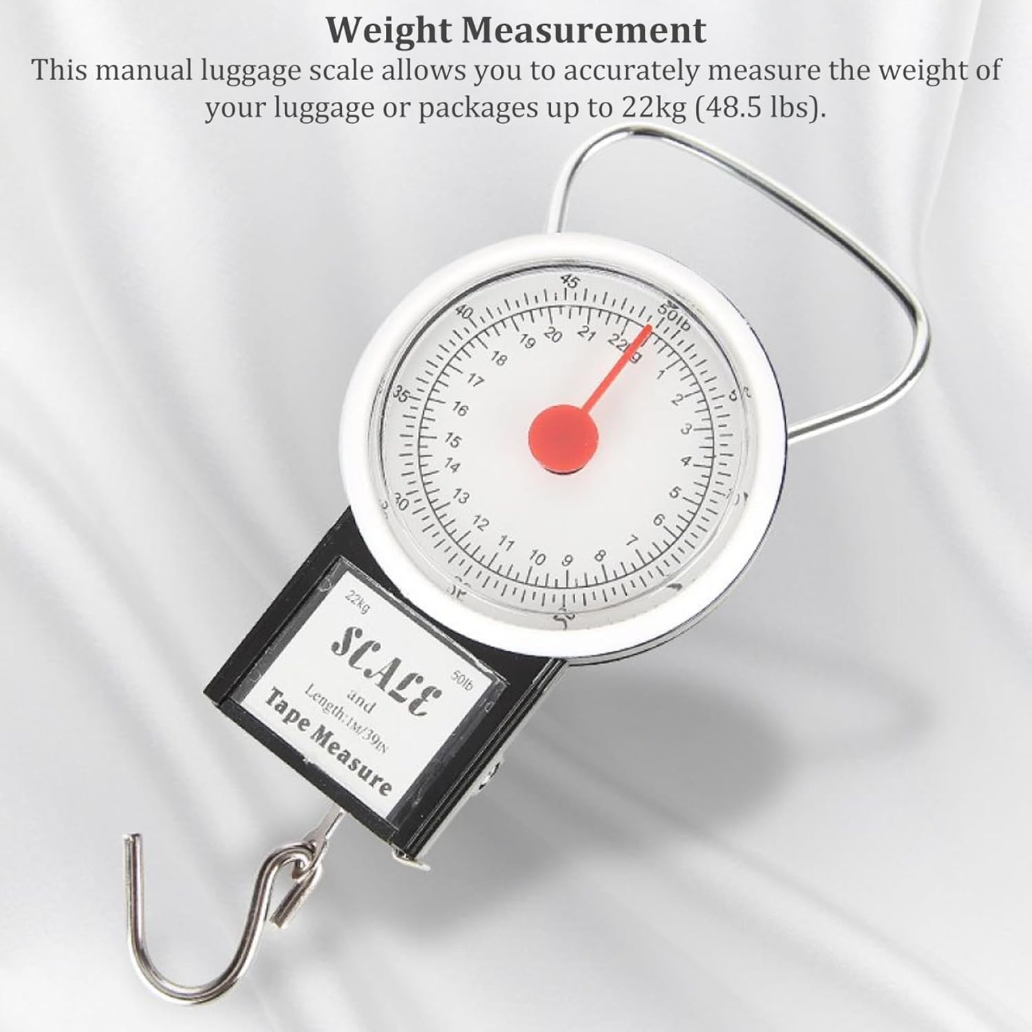 Weight Measurement: This manual luggage scale allows you to accurately measure the weight of your luggage or packages up to 22kg (48.5 lbs). Say goodbye to unexpected overweight baggage fees at the airport or uncertainties when sending packages.