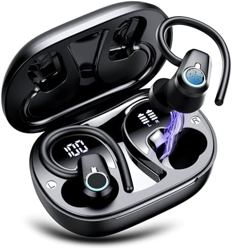 50 Hrs Playtime and USB-C Fast Charge: The true wireless earbuds can be automatically charged in the case, and the earbuds provide up to 8-10 hrs of music time, while the portable charging case can extend it to 50 hrs. Bluetooth earphones feature a dual LED digital display that provides real-time battery status. With type-C quick charge, it only takes 2hrs to charge the case. (NOTE: Please fully charge it for the first use. If used for calls, the earbuds only lasts -3-4 hrs.)