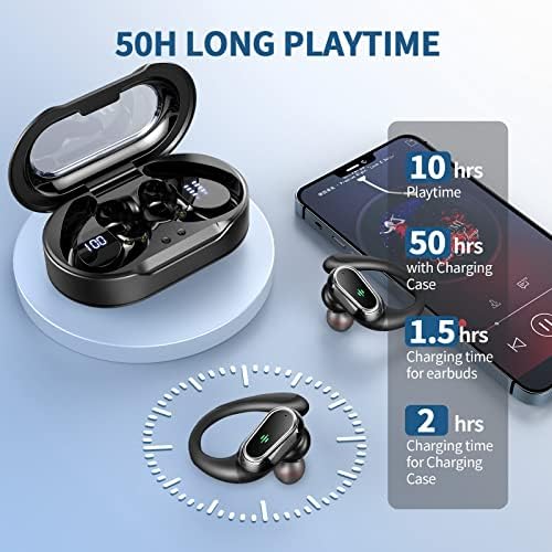 10Hrs Single Playtime and Dual LED Display: With a respectable battery life, The ear buds wireless bluetooth earbuds provide about 10hrs playback per charge. The included charging case extends the usage time to 50 hours by providing multiple additional charges on the go (Charging port is Type-C). Besides, due to the transparent cover of the case, the LED display provides a more intuitive real-time indication of the remaining battery level of the case and the charging status of the earbuds.