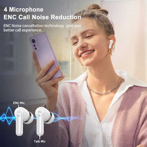 Premium Stereo Soundstage and Crystal Clear Calls: The wireless headphones are equipped with 13mm speakers that deliver powerful bass, ultra-clear vocals and stunning highs for a high-fidelity sound experience. The Bluetooth headphones have 4 built-in microphones with omni-directional sound capture and a signal-to-noise ratio of up to 57dB, which effectively reduces moderate wind noise while keeping the caller’s voice clear, allowing you to enjoy high-quality calls.
