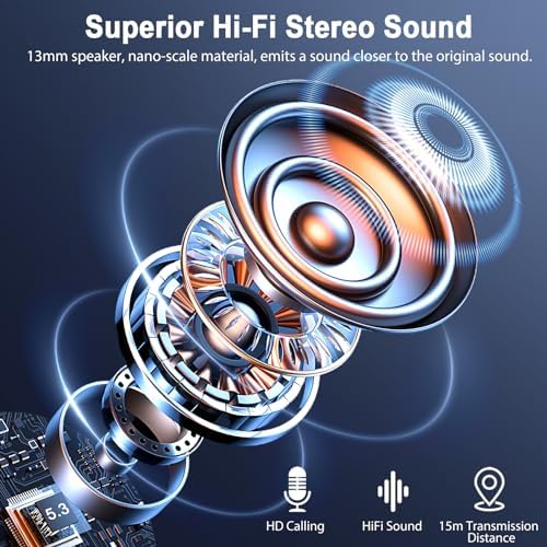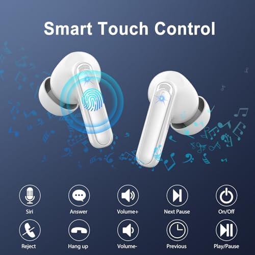 Bluetooth 5.3 and One-Step Pairing: The Bluetooth earbuds utilize advanced Bluetooth 5.3 technology and support HID, HFP, A2DP and AVRCP Bluetooth protocols, allowing you to connect to multiple devices at the same time, with data transfer speeds up to 2x faster than the previous generation, dramatically reducing data latency and improving connection stability. The wireless earbuds also come with a capacitive touch interface and a full control suite that performs all functions with a single tap.