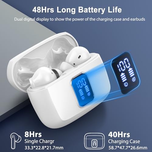 LED Power Display and 48 Hours Playtime: The wireless ear buds provide 6-8 hours of music playback or 3-4 hours of talk time on a 1.5 hour charge, and when used with the charging case, provide up to 40 hours of total playback time for a full day of work and sports. The LED power display can track the remaining power of the charging case and the charging status of the earphones in real time. The Type-C charging port ensures a faster and more convenient charging experience.