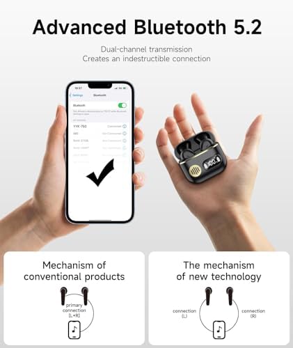Powerful Technology Support- Bluetooth 5.3 Headphones: Adopts Hall switch, pairing is straightforward: Once paired, earbuds will reconnect to the last connected device automatically while opening the case. Version 5.3 Bluetooth ensures a fast and stable connection. A voice prompt will also let you know various messages, like when connected or disconnected, as well as when you’ve hit max volume