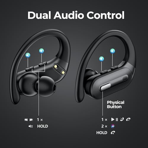 3.【Designed for Sports & IPX7 Waterproof】Boasting a comfortable, ergonomic design with flexible, secure-fit ear hooks, these wireless earphones snugly and securely fit into your ears, even during vigorous exercise, preventing any unwelcome slips. With the inclusion of four pairs of rubber ear tips in various sizes (XS, S, M, L), you can enjoy a fatigue-free and painless listening experience, even if you have smaller ears. IPX7 waterproof rating guarantees protection against water droplets and sweat, making these wireless sports earbuds the perfect choice for workouts, running, and gym sessions.