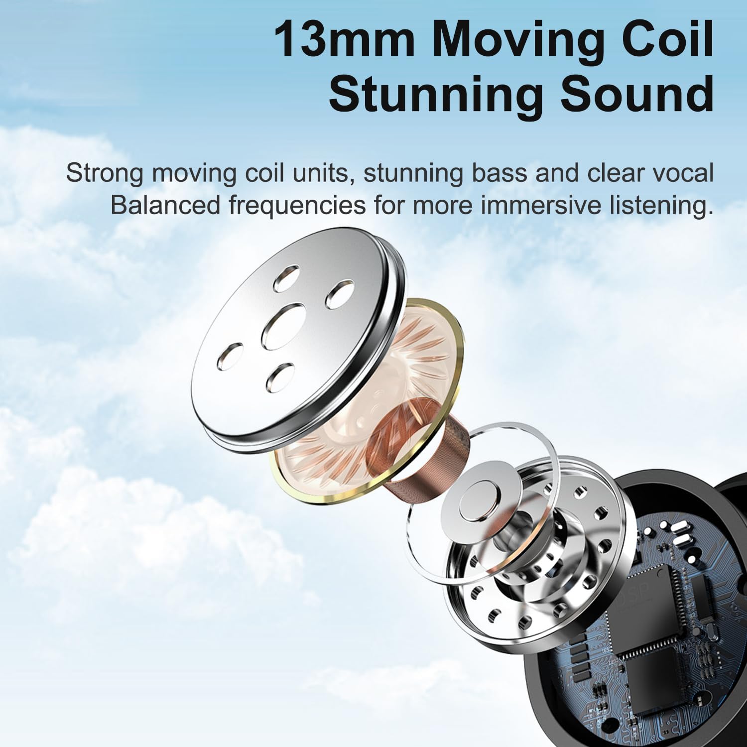 【Excellent ENC Noise Reduction Feature】 Wireless bluetooth earbuds incorporate 13mm double-layer diaphragm drivers. ENC noise cancelling function out environmental noise with up to 25 dB of noise reduction. It also ensures high resolution voice recognition and call quality even in noisy environments. It can support the mono mode and twin stereo mode. Eearbuds has a build-in microphone for phone calls.