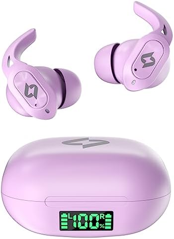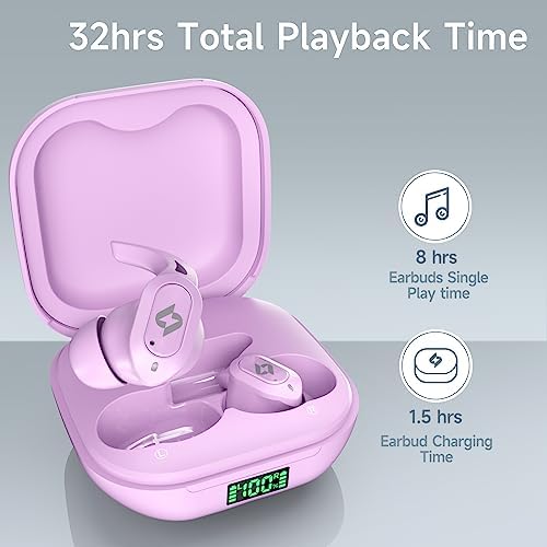 【LED Digital Power Display & 32hrs Playtime】You can enjoy 6-8 hours of continuous use on a single charge, and the included charging case provides an additional 3 full charges, extending the total battery life up to 24-32 hours. without worrying about running out of power. The charging case features a convenient LED display that shows the remaining battery life of both the headphones and the case. You can easily check the battery level and know when it’s time to charge the case or the earbuds.