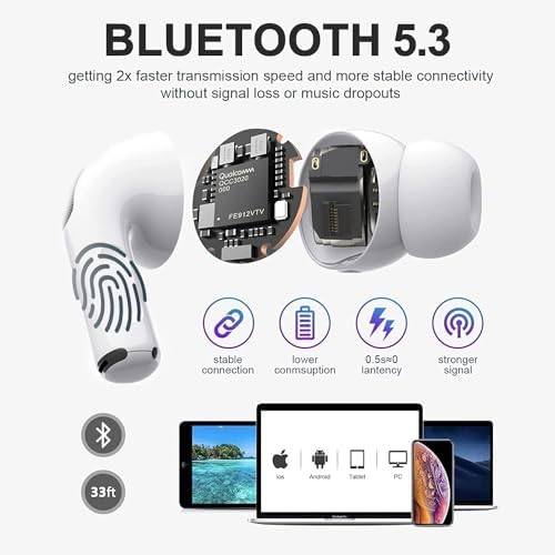 【Newest Bluetooth 5.3 Technology】Our wireless earbuds use the Adopt the most advanced Bluetooth 5.3 technology on the market currently, which means the bluetooth earbuds have the most stable signal connection, better sound quality and lower power consumption.