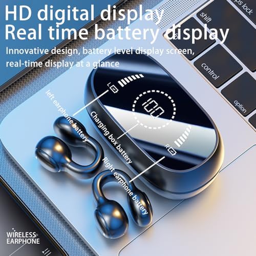 【Automatic Pairing & Smart Touch Control】The ear clip headphones bluetooth adopts hall switch;After first connection,these ear clip wireless earbuds will connect with your device once you open the charging case,which is faster and more convenient;During using,you can touch either earbud to control the phone,such as the music switch,volume adjustment,phone calls,etc.