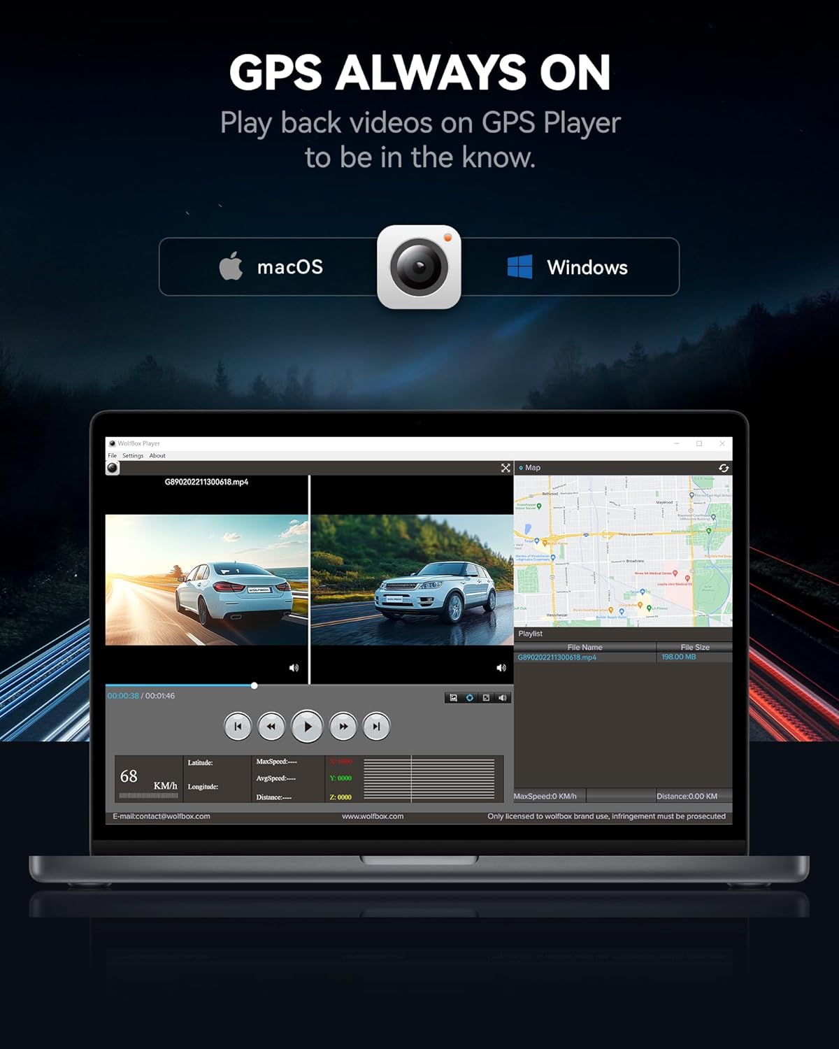 GPS TRACKING ALL THE TIME – The included external GPS antenna enables real-time GPS data display directly on the dash cam. Easily playback recordings to relive your journey and analyze driving data with precision.