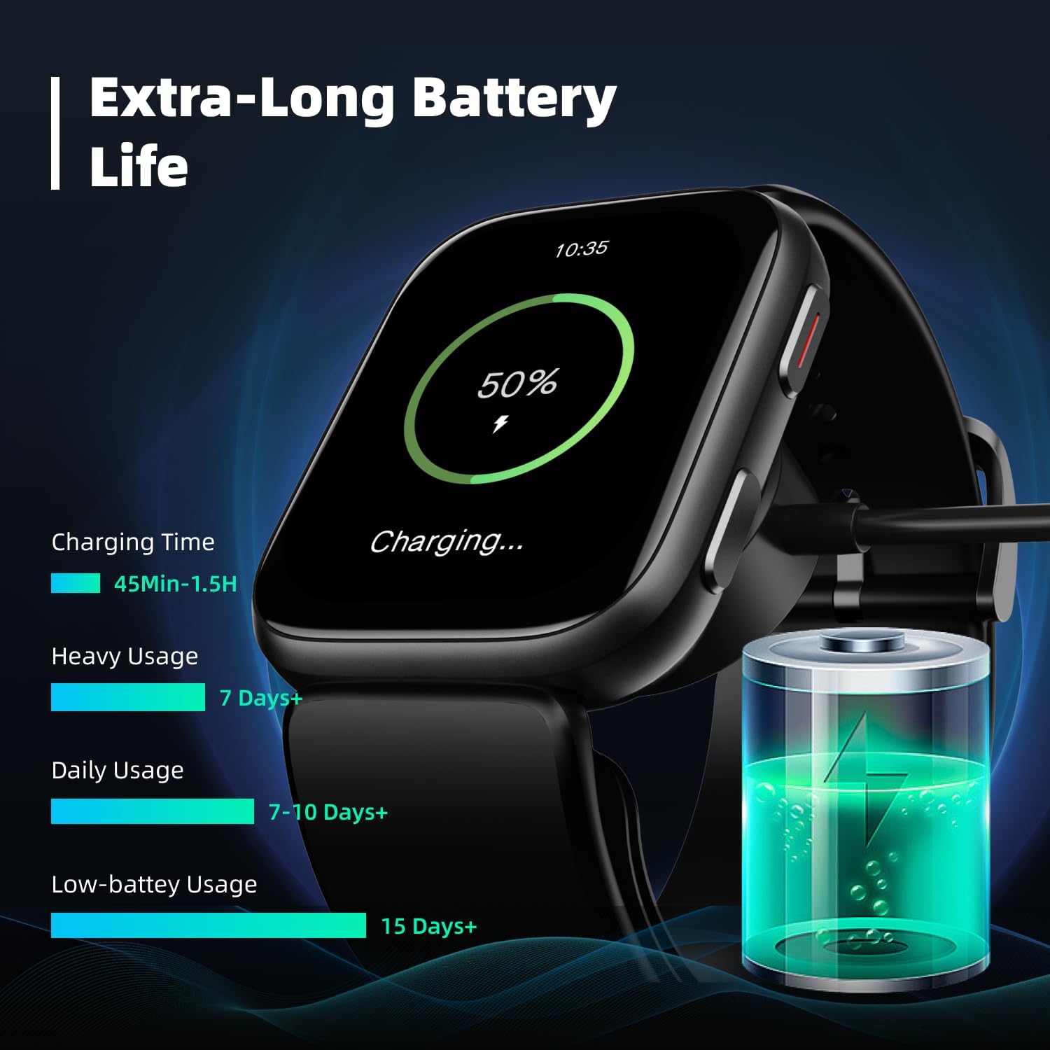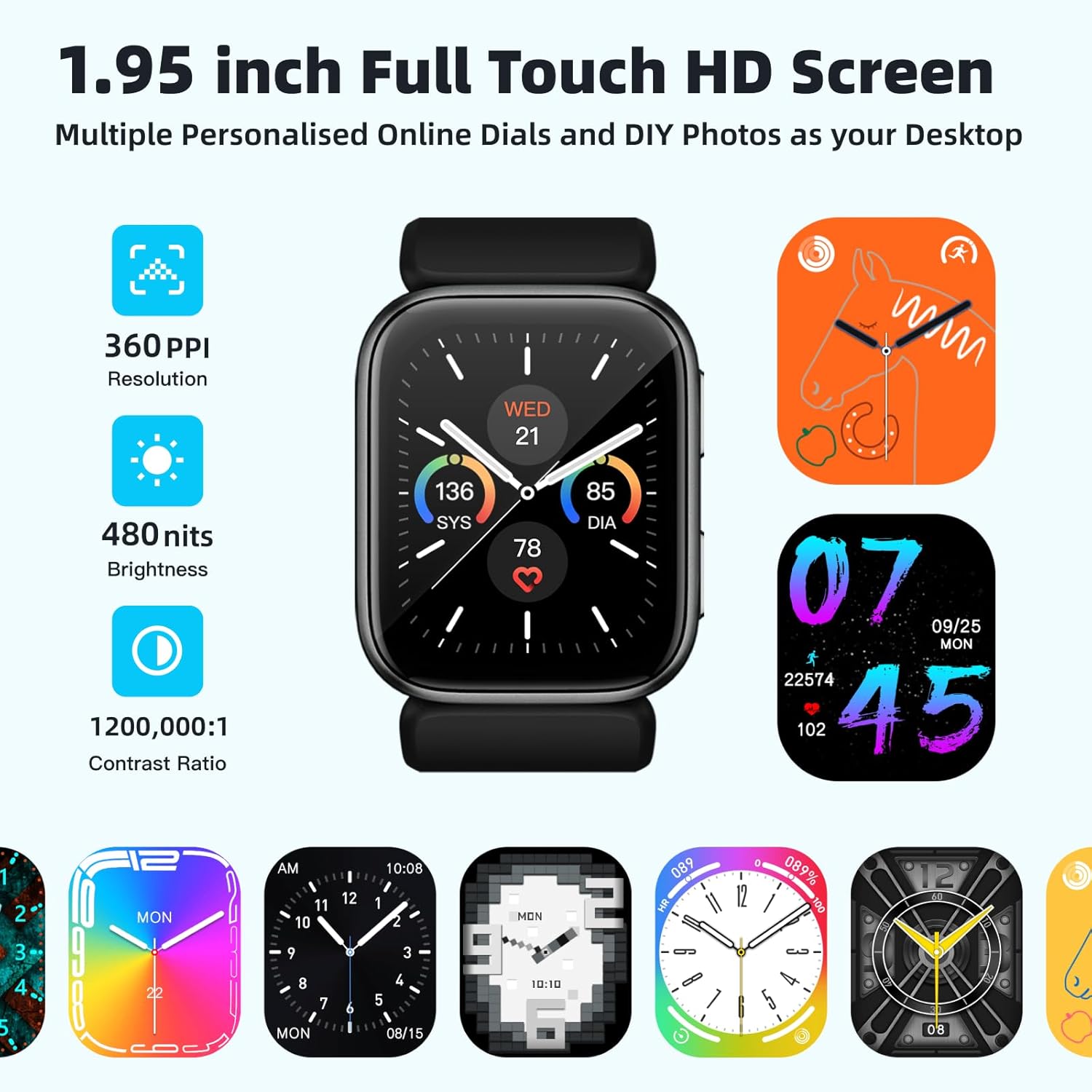 1.95” HD Touch Screen and DIY Dials: This smart watches for men is equipped with a 1.95‘’ ultra-clear full-touch color screen, which can provide excellent picture quality. With the “Da Fit” app, you can download multiple personalised dials and set it as your desktop, as well as DIY photos of your family, pets, selfies as backgrounds for smart watch for android phones. The smart watch with blood pressure monitor comes with brightness options that makes it easy to display data even in the sun.