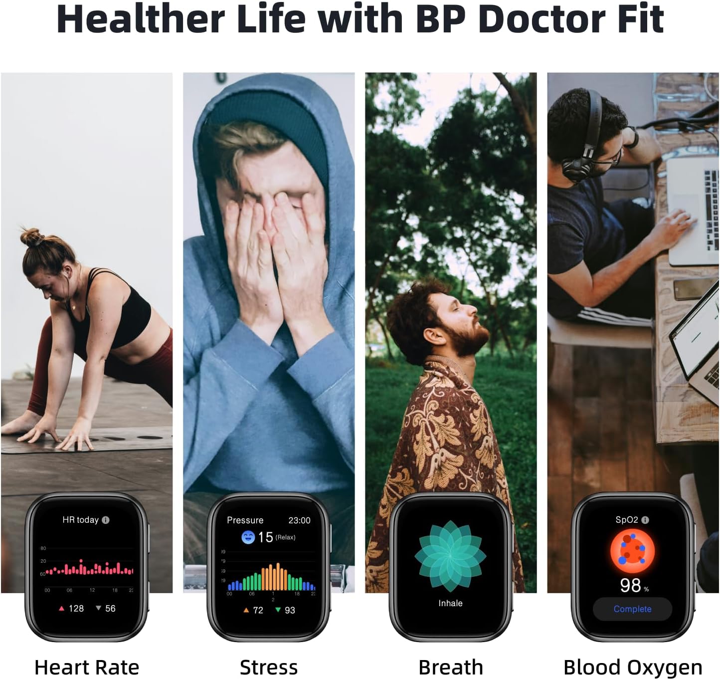 Multifunctional and Long Battery: This fitness tracker offers 50+ in and outdoor sports modes. During your exercise, watches for men will record your data like heart rate, steps, calories burned, distance and active hours in real time. Besides, the fitness watch features Breathing,Weather,Alarm,Timer,Pedometer,Brightness adjustment, mute,Always-on display,Motion recording,Stopwatch,Calculators. The bp doctor watch with 1 hrs of charging, 7 days of normal use and about 15 days of standby time.