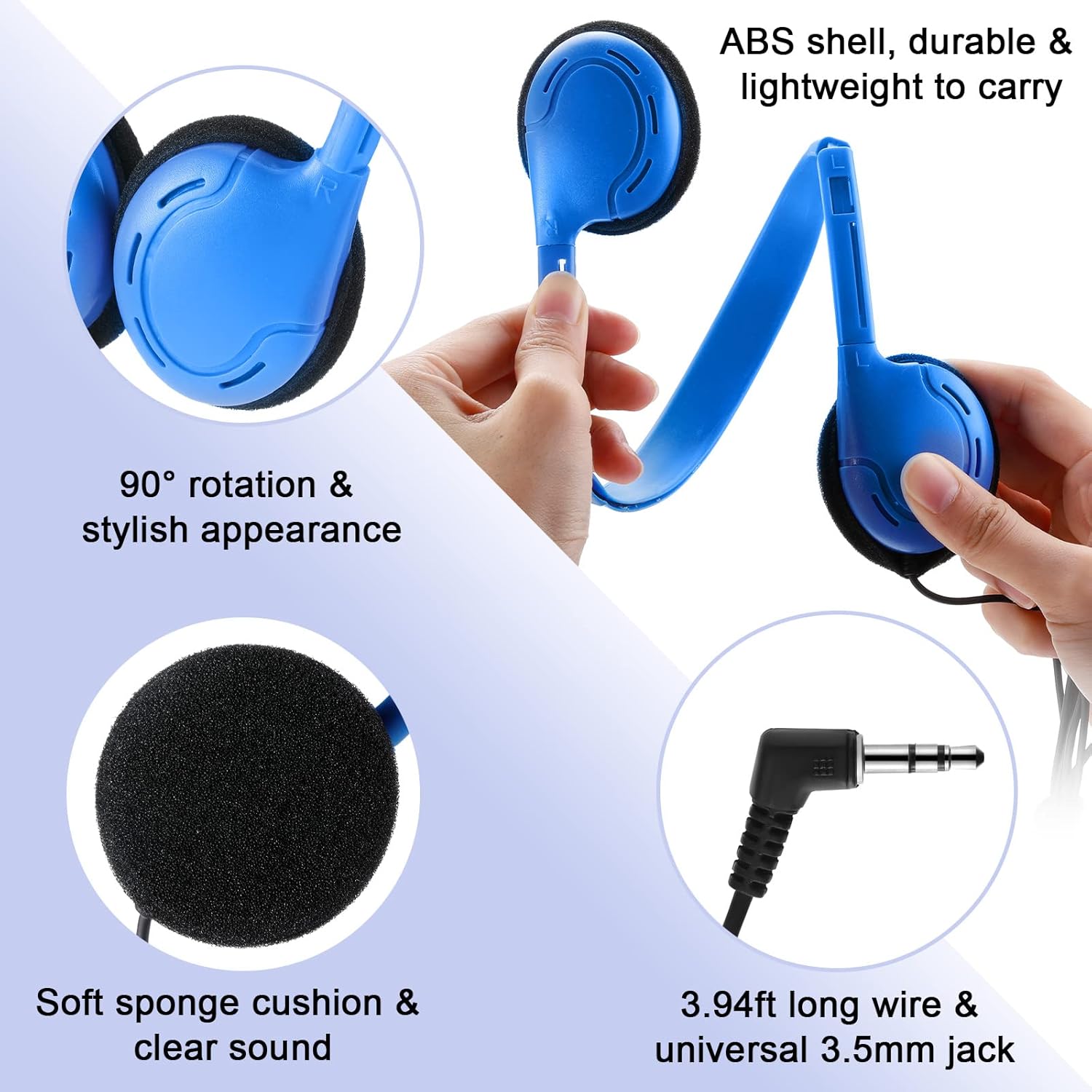 Adjustable on Ear Headphone: classroom headphones bulk are adjustable to fit your head well, lightweight and easy to carry, which not easy to fall, suitable for most kids, girls, boys and adults, also nice party favors or classroom rewards for events or festivals