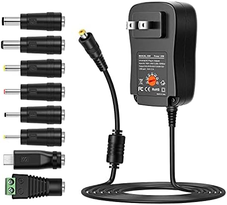 Various voltage choices and changable tips, ideal Versatile AC adaptor for lots of indoor electronics, such as router, led strip, lamp, webcams, security cameras,